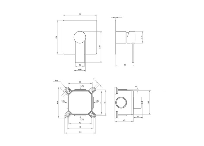 Змішувач прихованого монтажу, кріпильні деталі.