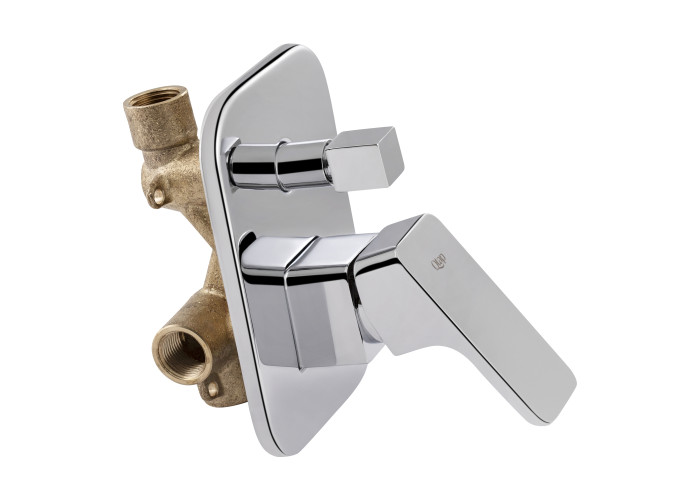 Смеситель скрытого монтажа для душа Qtap Namesti 6225102NC на два потребителя - это отличное решение для современной ванной комнаты. Он придаст изысканный вид интерьеру ванной, а прочная хромированная поверхность сохранит внешний вид смесителя на долгие годы. Функциональная часть изготовлена из высококачественной латуни, устойчивой к коррозии. Управление потоком воды осуществляется с помощью удобного рычага, а переключение между потребителями с помощью дивертора.