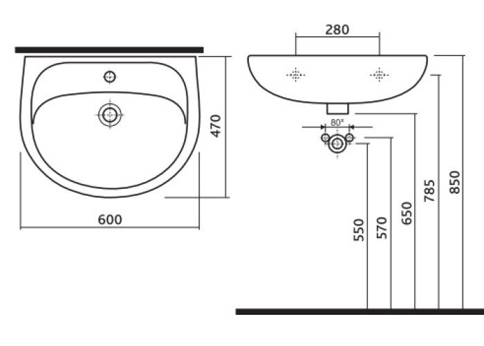 SOLO умывальник 60 см, с отверстием под смеситель, с переливом, вес 14 кг