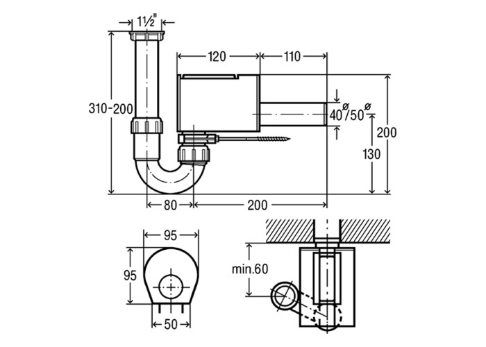 комплектация: трубный сифон, 2 запорные заслонки, ручной привод, стеновая монтажная консоль
