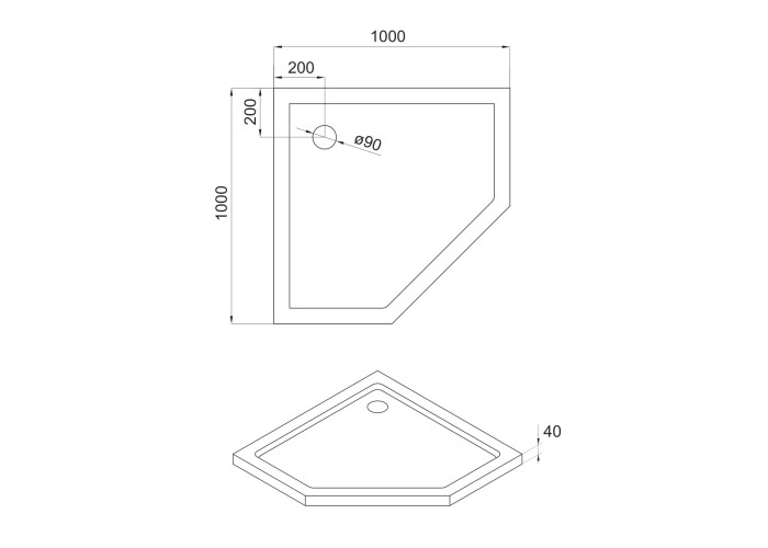 Поддон пятиугольный 1000*1000*40 мм, акрил, к душевой кабине 599-535-100. В комплекте сифон в отдельной коробке.