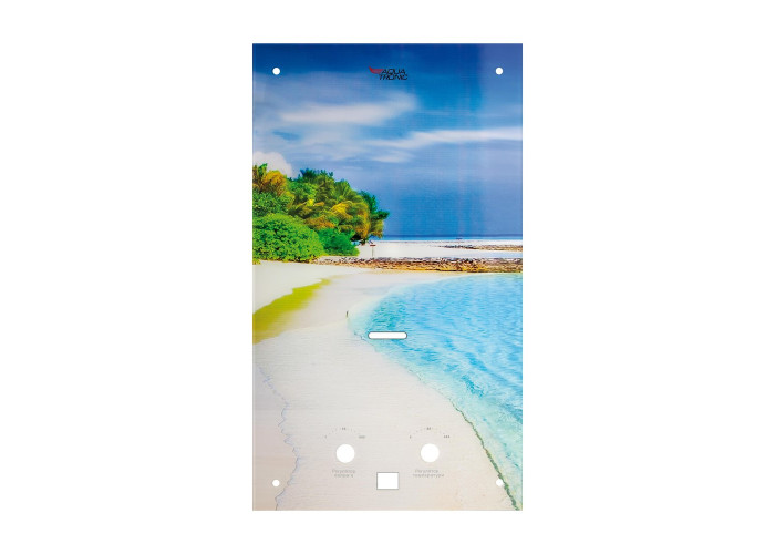Скляна панель AquaTronic (beach) для газової колонки AquaTronic виконана з малюнком пляжу. Ручки, дисплей і кріпильні болти в комплектацію не входять.
