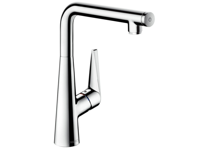 Смеситель для кухни, однорычажный, поворотный излив, с кнопкой управления