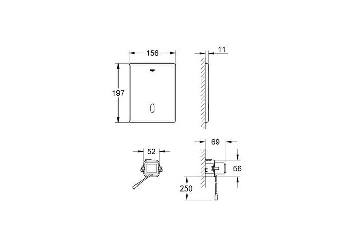 Клавиша смыва для подвесного унитаза, 156*197 мм, прямоугольная, пластиковая, сенсорная, одинарный тип слива