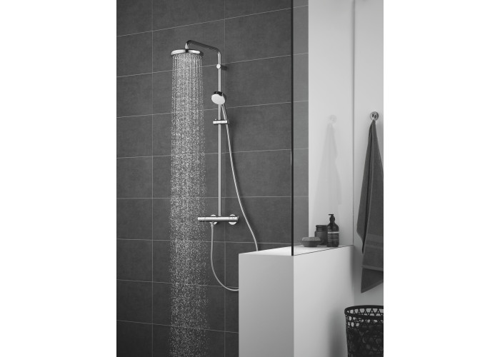 Материал: латунь Цвет: хром Монтаж: настенный Верхний душ Tempesta 210 26408000 - струя: Дождь - с шарнирным соединением - угол поворота ± 15 ° Ручной душ New Tempesta Cosmopolitan 100 27571001 - 2 регулируемых спрея - Дождь, Jet - регулируемая по высоте с помощью скользящего элемента Шланг для душа Rotaflex 1750 мм 1/2 "x 1/2" 28410000 Дополнительный ограничитель температуры GROHE SafeStop Plus при 43 ° C включен Twistfree для предотвращения скручивания шланга Подходит для мгновенного нагрева от 18 кВт / ч Минимальный расход 7 л / мин. Минимальное давление 1,0 бар.