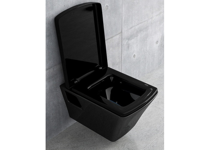 TEO black унитаз 530*355*400 мм подвесной, без сидения, прямоугольный, цвет - черный. Подключение к канализации: горизонтальное.