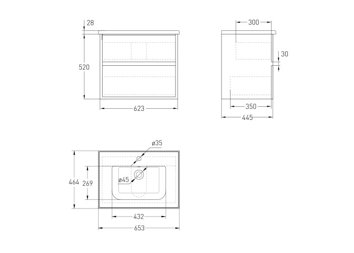 • Керамическая накладная раковина с переливом, 1 отверстие под смеситель