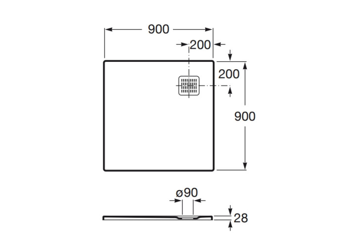 TERRAN поддон 900*900*28 мм, квадратный, ультраплоский, с сифоном, со сливной стальной решеткой, цвет белый
