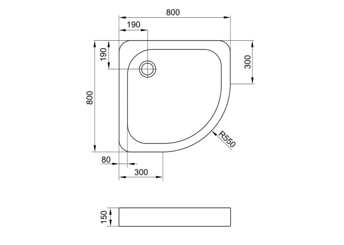 TISZA поддон 80*80*15см полукруглый, акриловый