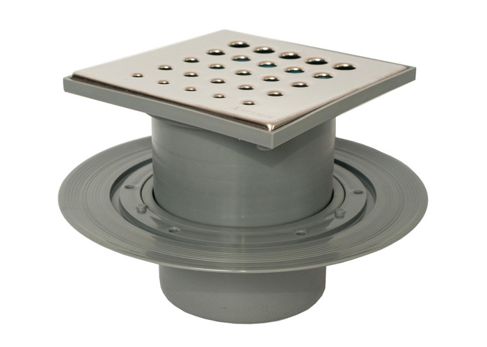 Трап для душу вертикальний без флянця CONFLUO DROPS. Розмір 15х15. Матеріал – пластик, нержавіюча сталь. Колір сірий. Виробник Сербія.