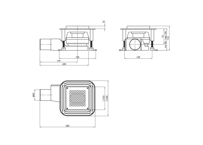 Точечный трап Qtap Aquarius BLA6011304 поможет обустроить современную душевую зону без применения душевого поддона, на уровне с полом. Корпус трапа выполнен из качественного ABS пластика черного цвета. Данная модель выполнена с квадратной решеткой из нержавеющей стали размером 103х103 мм и имеет выпускное отверстие диаметром 50 мм. Отличительным преимуществом является комбинированный затвор, который не дает неприятному запаху проникать в помещение из канализации по трубам.