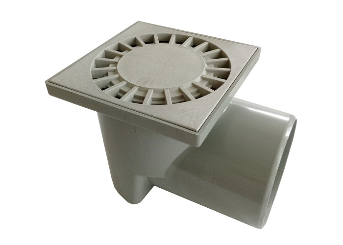Горизонтальний пластиковий душовий трап торгової марки Santehplast (Сантехпласт) з гідрозатвором сірого кольору. Розмір решітки – 15х15 см. Узор решітки – сонечко. Діаметр випуску – DN110. Виробництво – Харків, Україна.