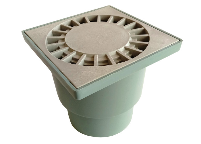 Вертикальний пластиковий душовий трап торгової марки Santehplast (Сантехпласт) з гідрозатвором сірого кольору. Розмір решітки – 15х15 см. Узор решітки – сонечко. Діаметр випуску – DN110. Виробництво – Харків, Україна.