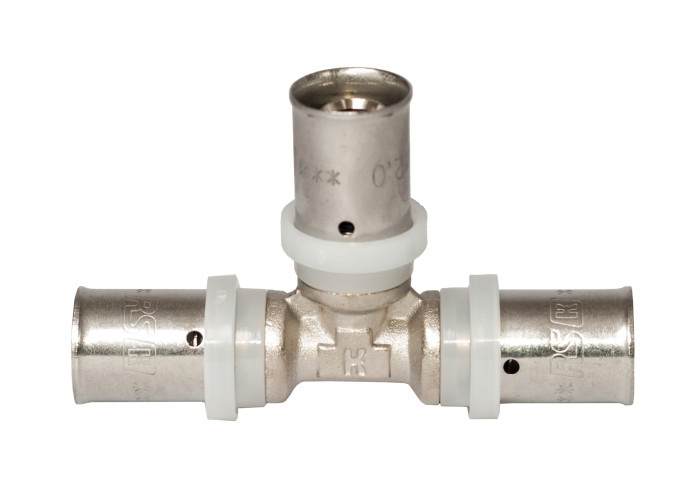 Муфта, диаметр 26 мм на 26 мм на 26 мм, RSk Италия латунная никелированная. Пресс-фитинги RSk предназначены для создания неразъемных соединений трубопроводов из металлополимерных труб (PEX-AL, PE-AL, PERT-AL). Для их производства используется высококачественная латунь CW617N. Готовая продукция имеет никелированное покрытие. Фитинги под пресс используются для создания систем водопроводов и отопления. Ассортимент бренда RSk состоит из муфт, тройников и угольников, в том числе и настенных сантехнических уголков. Представлены модели как соединительного типа, так и с переходом на наружную либо внутреннюю резьбу. Имеются как равнопроходные, так и редукционные (переходные) опрессовочные фитинги разных размеров (16-32). Данные фитинги соответствуют всем европейским нормам и стандартам качества, имеют подтверждающие документы и за надежность, качество и долговечность пользуются большой популярностью у клиентов.