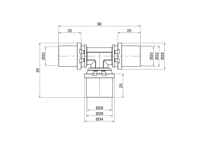 Трійник прес Icma 20х26х20 №406