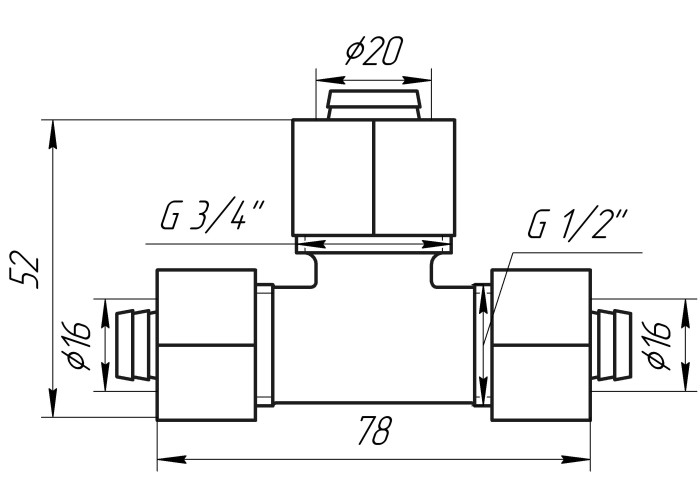 Тройник промежуточный APE ITALY 731 L 16x20x16