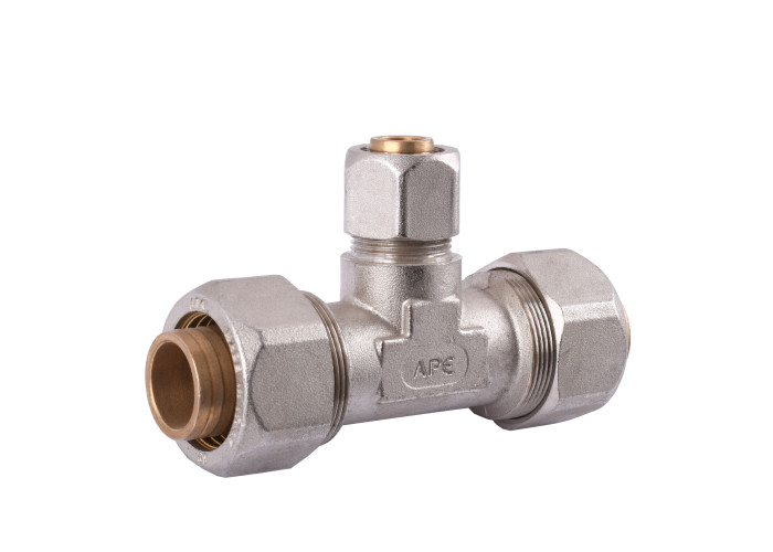 Тройники серии 731 L были спроектированы и реализованы для оказания помощи установщику, сокращая время на монтаж и увеличивая характеристики стойкости во времени. Кроме того, данная серия фитингов не требует особых инструментов для монтажа Стойкость крепления между трубой и фитингом гарантируется одновременным наличием двух уплотнительных колец (2), расположенных в елочке (6 )и особой, противоскользящей, формой самой елочки (в виде зубов пилы). Крепление трубы происходит за счет особого вида прессования, состоящего из радиального прессования, полученного за счет завинчивания гайки (7 )которая определяет сжатие разрезанной оживальной части ( 5) вокруг трубы и осевого прессования, которое сжимает уплотнительное кольцо (4) на корпусе. Подобная система прессования гарантирует стойкость полученного соединения в любых условиях работы. Кроме того, работая на латуни в прессовании, исключаются риски возникновения микротрещин. Наличие шайбы (3) из PTFE изолирует алюминий трубы от латуни фитинга для избегания возникновения коррозийных эффектов