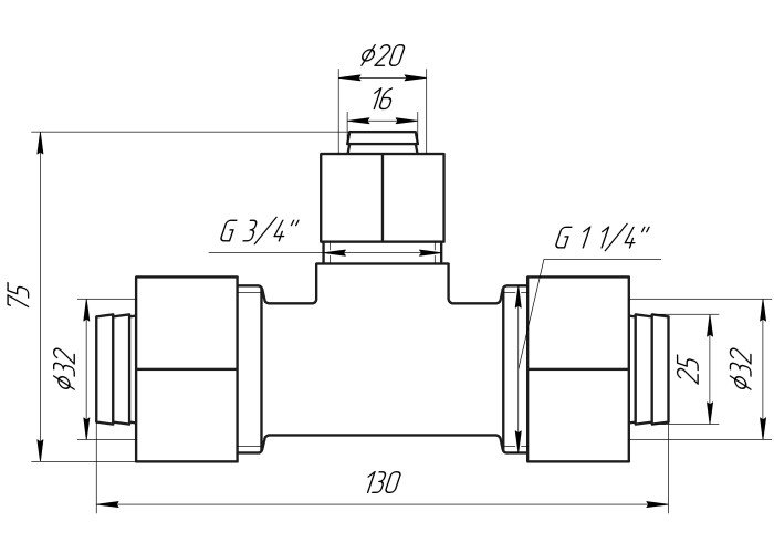 Тройник промежуточный APE ITALY 731 L 32x20x32