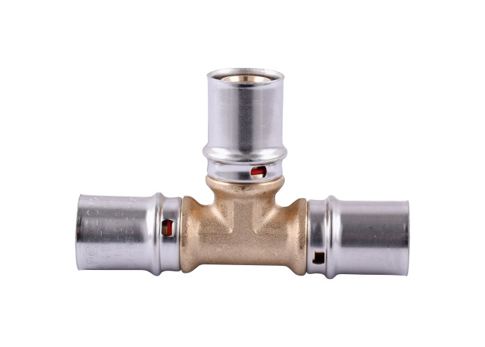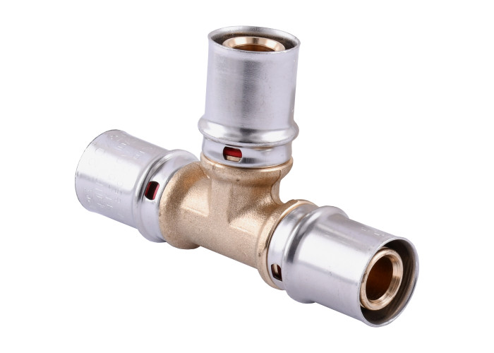 Материал корпуса это медный сплав, называемый CW617N , подходящий для горячего прессования Стойкость крепления между шлангом и фитингом гарантируется одновременным наличием двух уплотнительных колец (см. рис), расположенных в елочке и самой формой данной елочки. Крепление происходит за счет перманентной деформации втулки при помощи прессовального оборудования, имеющего соответствующие тиски. Сила пресса деформирует, в свою очередь, трубу на соответствующем профиле. Толщина втулки спроектирована и определена таким образом, что бы выдерживать значительные давления, так же при наличии колебаний температуры. Втулка изготовлена из нержавеющей стали AISI 304,проходящей процесс перевода в растворимое состояние для того, что бы устранить возможные остаточные напряжения, имеющиеся в металлах. Кроме того, таким образом, гарантируется равномерное распределение напряжений во времени. Имеет 2 отверстия для возможности визуального контроля соединения шланг - фитинг. Наличие шайбы из PTFE изолирует алюминий шланга от латуни фитинга для избегания возникновения коррозийных феноменов
