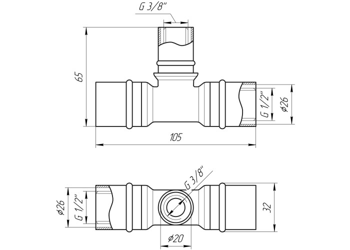 Габариты : 26*20*26 на 20 и 26 металлопластиковую трубу
