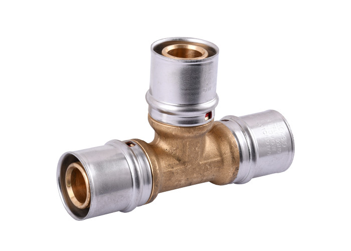 Материал корпуса это медный сплав, называемый CW617N , подходящий для горячего прессования Стойкость крепления между шлангом и фитингом гарантируется одновременным наличием двух уплотнительных колец (см. рис), расположенных в елочке и самой формой данной елочки. Крепление происходит за счет перманентной деформации втулки при помощи прессовального оборудования, имеющего соответствующие тиски. Сила пресса деформирует, в свою очередь, трубу на соответствующем профиле. Толщина втулки спроектирована и определена таким образом, что бы выдерживать значительные давления, так же при наличии колебаний температуры. Втулка изготовлена из нержавеющей стали AISI 304,проходящей процесс перевода в растворимое состояние для того, что бы устранить возможные остаточные напряжения, имеющиеся в металлах. Кроме того, таким образом, гарантируется равномерное распределение напряжений во времени. Имеет 2 отверстия для возможности визуального контроля соединения шланг - фитинг. Наличие шайбы из PTFE изолирует алюминий шланга от латуни фитинга для избегания возникновения коррозийных феноменов