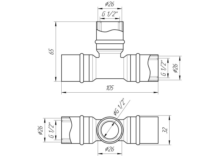 Габариты : 26*26*26 на 26 металлопластиковую трубу