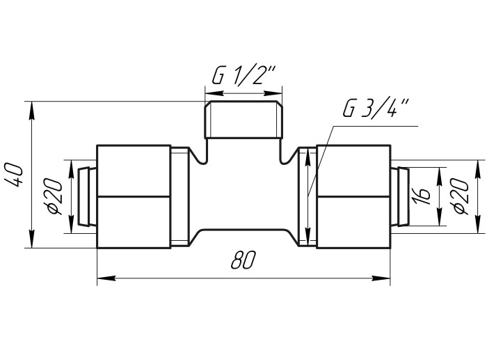 Габариты : 20x1/2x20 на 20 металлопластиковую трубу