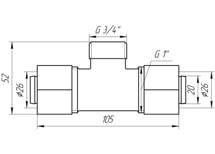Габариты : 26x3/4x26 на 26 металлопластиковую трубу