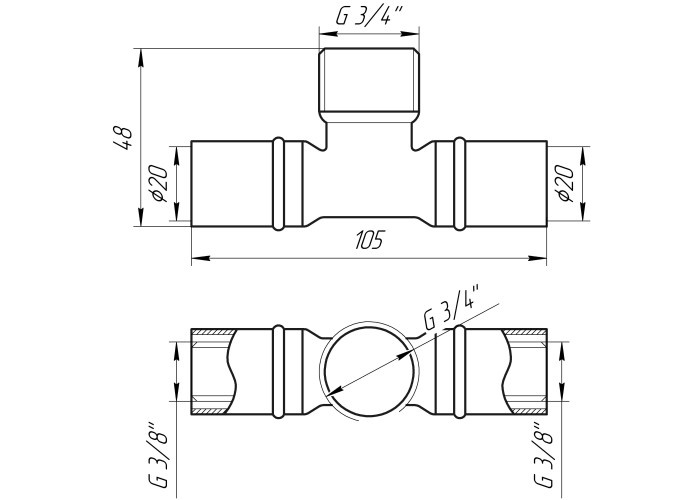 Габариты : 20*3/4*20 на 20 металлопластиковую трубу