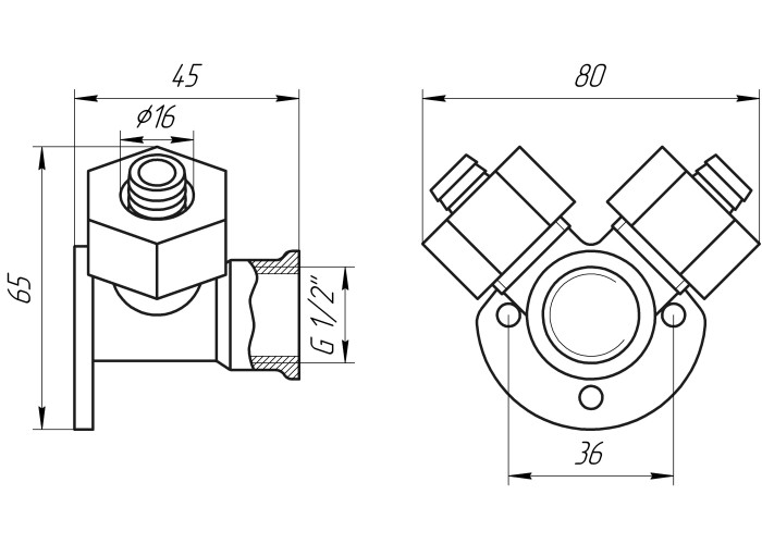 Габариты : 16*1/2*16 на 16 металлопластиковую трубу