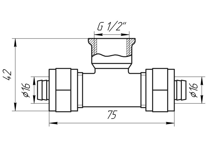 Габариты : 16*1/2*16 на 16 металлопластиковую трубу