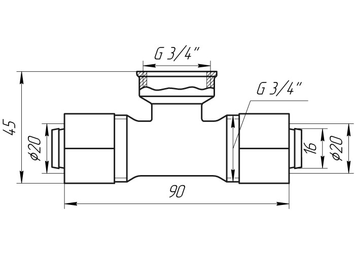 Габариты : 20х3/4x20 на 20 металлопластиковую трубу