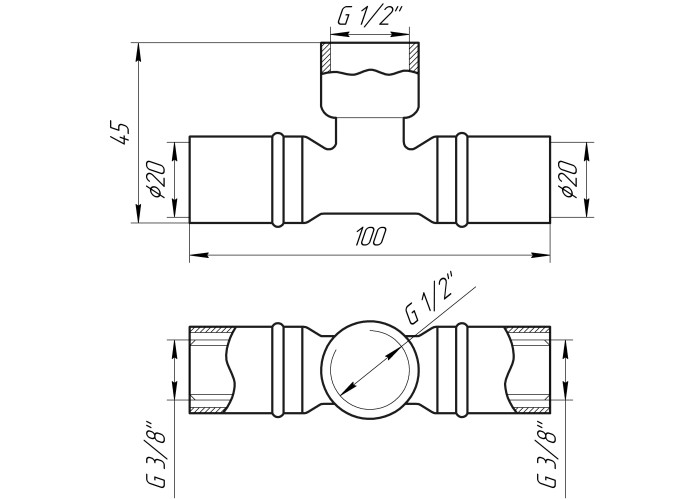 Габариты : 20*1/2*20 на 20 металлопластиковую трубу