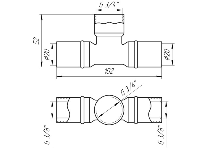 Габариты : 20*3/4*20 на 20 металлопластиковую трубу
