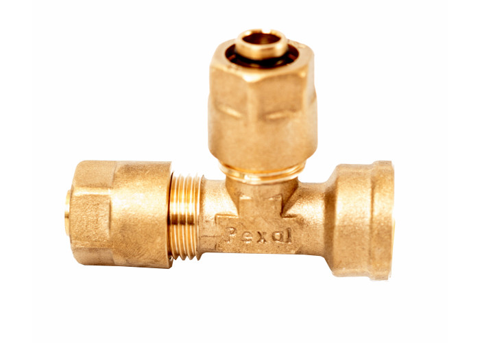 Тройник Т-образный 16 х 16 х 1/2 "В для 2,25 Pexal 20/70. Вид фитинга - резьбовой. Система фитингов - обжим. Латунь. Произведено в Китае. Металлопластиковая система Pexal – система металлопластиковых фитингов (неразборные колено, муфта, тройник под обжим) на сегодняшний день считается одной из лучших на рынке Украины. Она заслужила свой особый статус у мастеров-монтажников и обычных потребителей. Металлопластиковые фитинги ПЕКСАЛ – сделаны из лучших материалов и отличаются исключительной надежностью. Широкий размерный и модельный ряд. Материал изделий - латунь без покрытия. Страна производитель: Китай. Тип соединений - комбинированный. Один выход под обжим, второй выход - дюймовая резьба. Позволяют проводить монтаж систем теплый пол любой сложности и всех возможных конфигураций, в том числе подключение смесителей. Для последнего предназначены водорозетки Pexal.