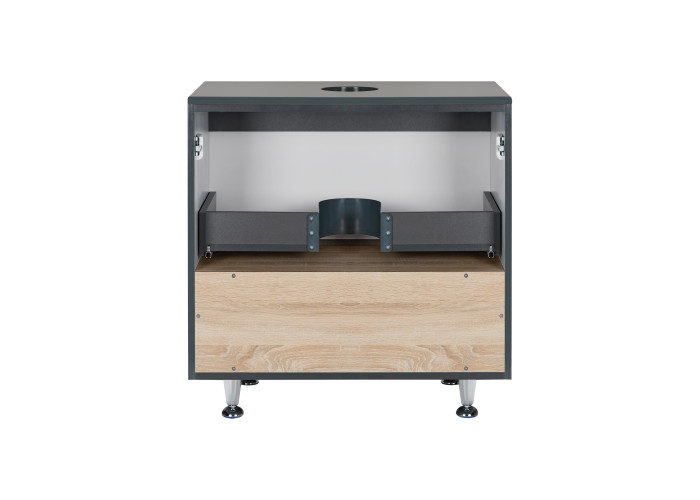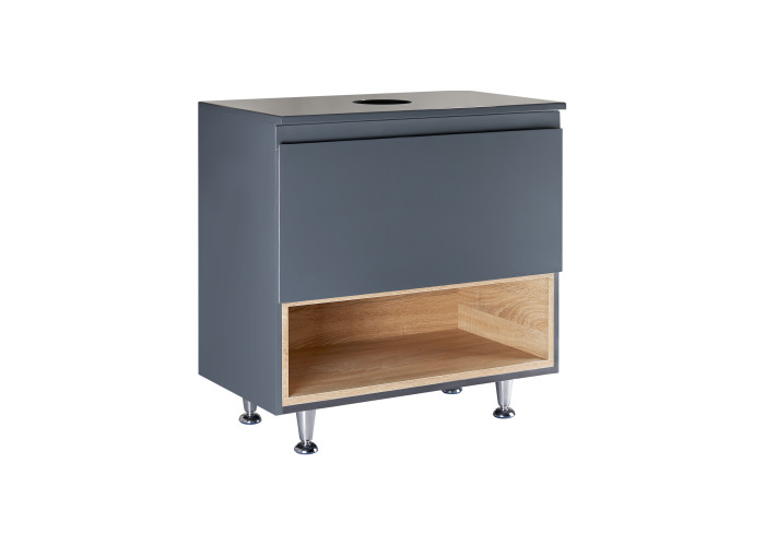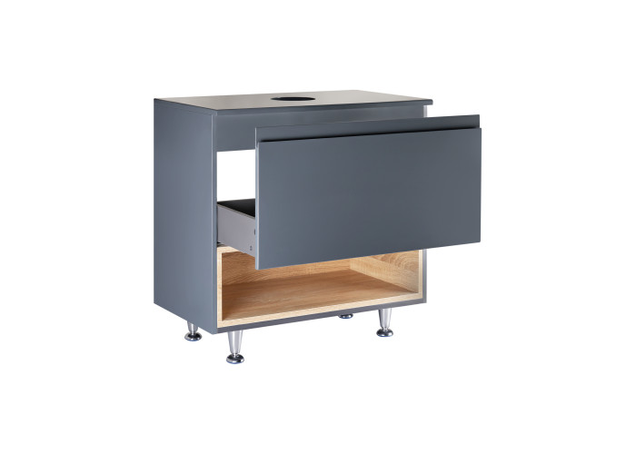 Напольная тумба Qtap Robin QT1380TNН6002GWO выполнена с отверстием для установки накладной раковины, а так же отверстием под сифон. Корпус тумбы серого цвета изготовлен из ЛДСП, фасадная часть из МДФ с глянцевым покрытием. Изделие оснащено удобным и вместительным выдвижным ящиком с механизмом доводчика, а так же стильной полкой цвета белого дуба. Тумба выполнена в элегантном лаконичном стиле и впишется в дизайн любой современной ванной комнаты.