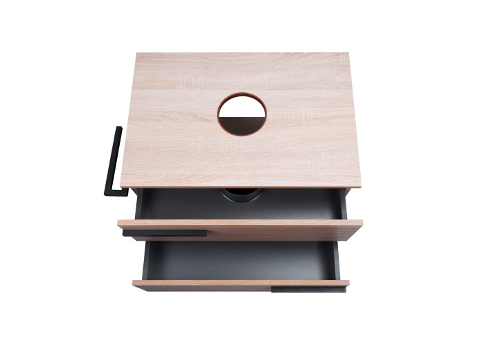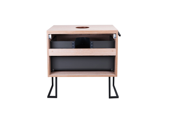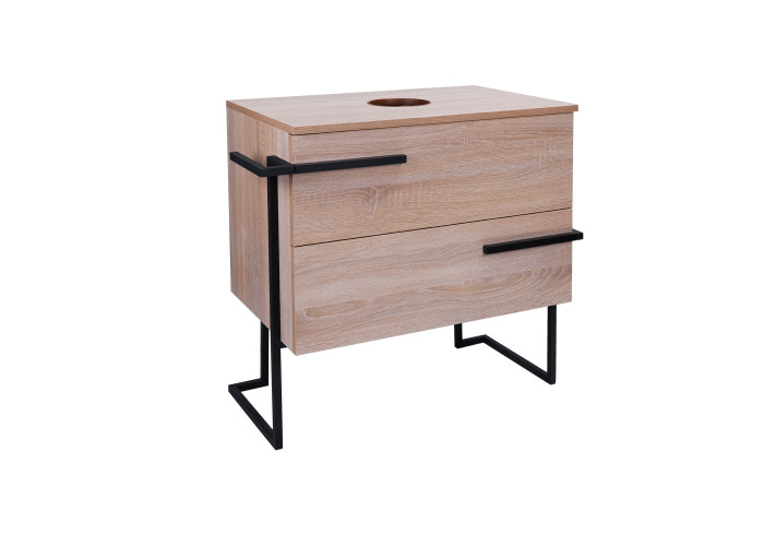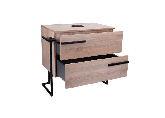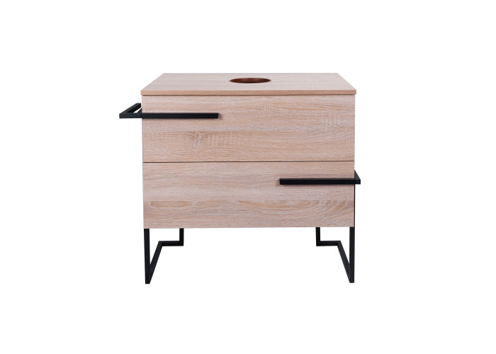 Напольная тумба Qtap Taurus 700х616х437 Whitish oak QT2480TNT703WO выполнена с отверстием для установки накладной раковины, а так же с отверстием под сифон. Корпус и фасадная часть тумбы цвета белого дуба изготовлены из ЛДСП. Изделие оснащено удобными и вместительными выдвижными ящиками с механизмом доводчика. Стальной крашеный каркас черного цвета придает тумбе оригинальный внешний вид, благодаря которому она впишется в дизайн любой современной ванной комнаты.