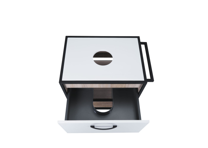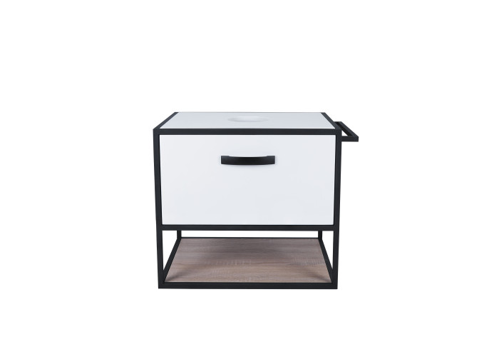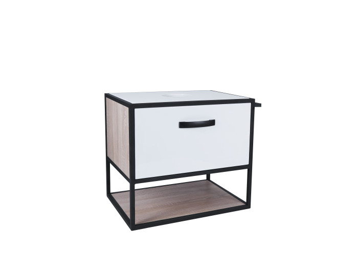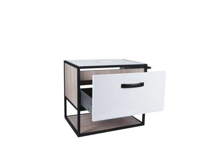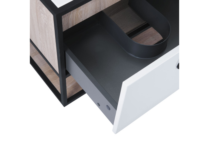 Підвісна тумба Qtap Taurus 600х476х469 White/Whitish oak зі стільницею QT2479TPT603WWO виконана з отвором для встановлення накладної раковини, а також отвором під сифон. Двоколірний корпус тумби виготовлений з ЛДСП, фасадна частина з МДФ. Виріб оснащений зручними і містким висувним ящиком з механізмом доведення і полицею. Сталевий фарбований каркас чорного кольору додає тумбі оригінальний зовнішній вигляд, завдяки якому вона підійде до дизайну будь-якої сучасної ванної кімнати.