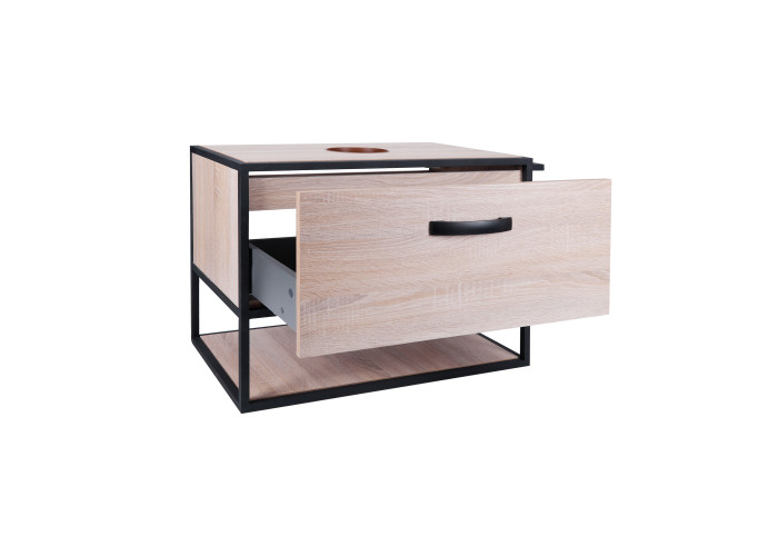 Подвесная тумба Qtap Taurus 800х476х469 Whitish oak со столешницей QT2479TPT803WO выполнена с отверстием для накладной раковины, а так же отверстием под сифон. Корпус и фасадная часть тумбы цвета белого дуба изготовлен из ЛДСП. Изделие оснащено удобным и вместительным выдвижным ящиком с механизмом доводчика и большой полкой. Цельнометаллический каркас черного цвета станет ярким акцентом. Подвесная конструкция и лаконичный стиль - бесспорные преимущества данного изделия.