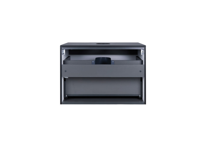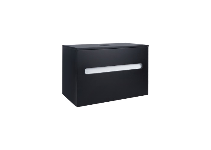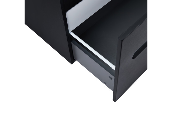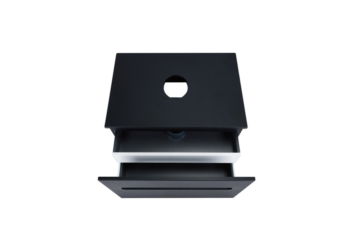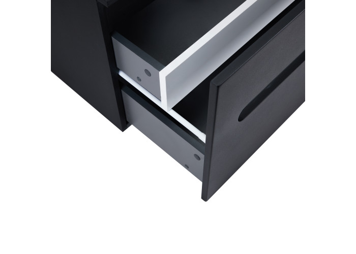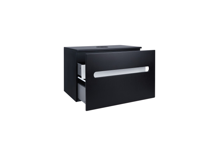 Подвесная тумба Qtap Virgo 700х476х469 Black/White со столешницей QT1879TPА702BW выполнена с отверстием для установки накладной раковины, а так же отверстием под сифон. Корпус тумбы черного цвета изготовлен из ЛДСП, фасадная часть из МДФ. Изделие оснащено удобными и вместительными выдвижными ящиками с механизмом доводчика. Скрытый внутренний ящик белого цвета придает тумбе оригинальный внешний вид, благодаря которому она впишется в дизайн любой современной ванной комнаты.