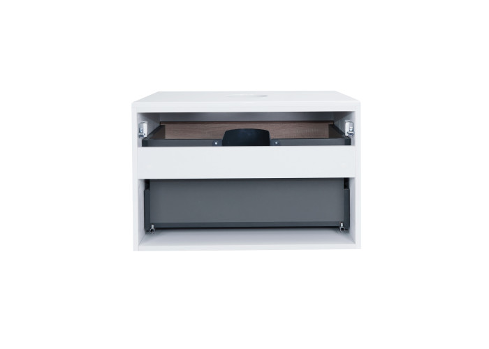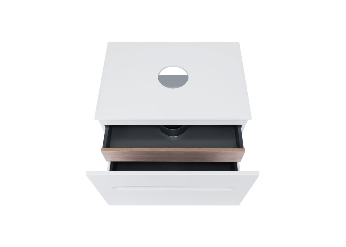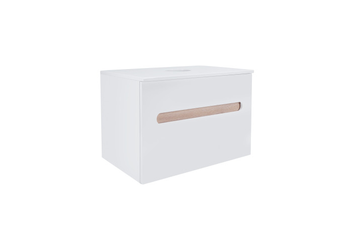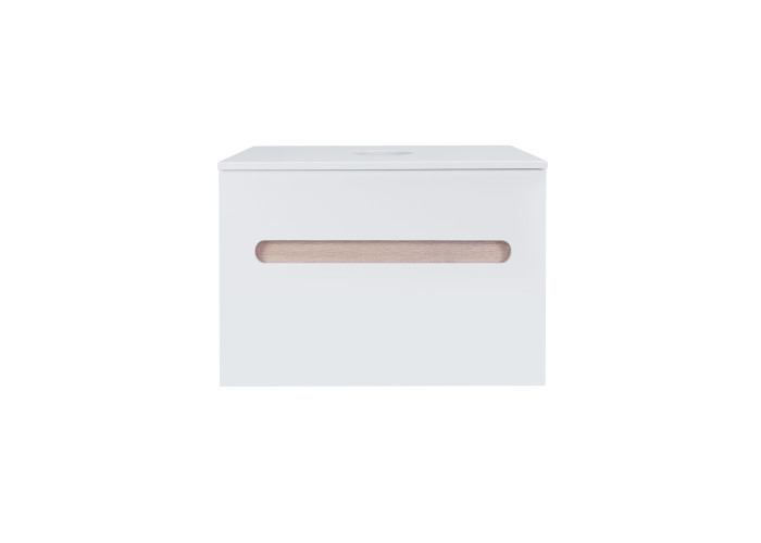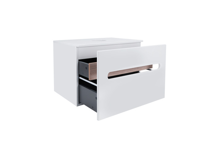 Подвесная тумба Qtap 700х476х469 White/Whitish oak со столешницей QT1879TPА701WWO выполнена с отверстием для установки накладной раковины, а так же отверстием под сифон. Корпус тумбы белого цвета изготовлен из ЛДСП, фасадная часть из МДФ. Изделие оснащено удобными и вместительными выдвижными ящиками с механизмом доводчика. Скрытый внутренний ящик цвета белого дуба придает тумбе оригинальный внешний вид, благодаря которому она впишется в дизайн любой современной ванной комнаты.