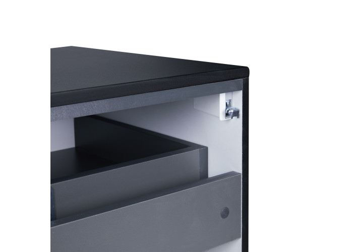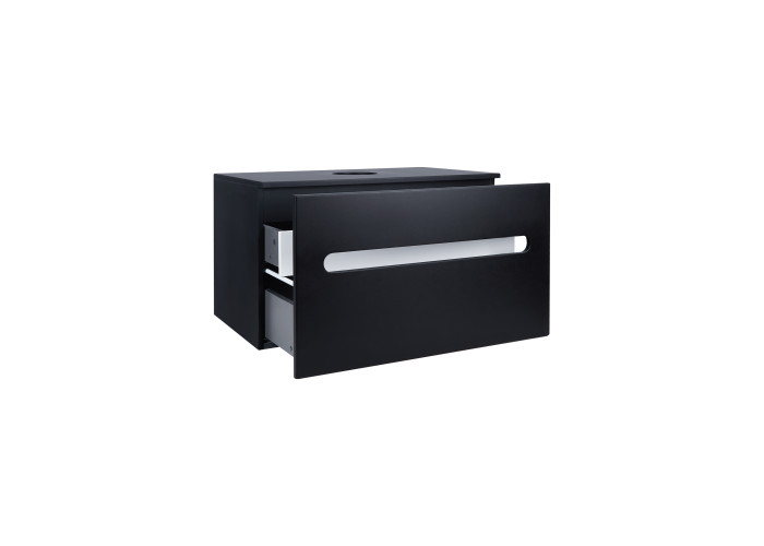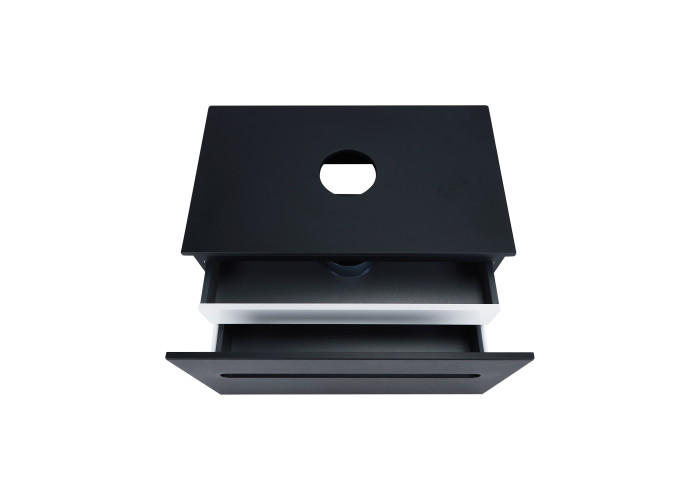 Подвесная тумба Qtap Virgo 800х476х469 Black/White со столешницей QT1879TPА802BW выполнена с отверстием для установки накладной раковины, а так же отверстием под сифон. Корпус тумбы черного цвета изготовлен из ЛДСП, фасадная часть из МДФ. Изделие оснащено удобными и вместительными выдвижными ящиками с механизмом доводчика. Скрытый внутренний ящик белого цвета придает тумбе оригинальный внешний вид, благодаря которому она впишется в дизайн любой современной ванной комнаты.