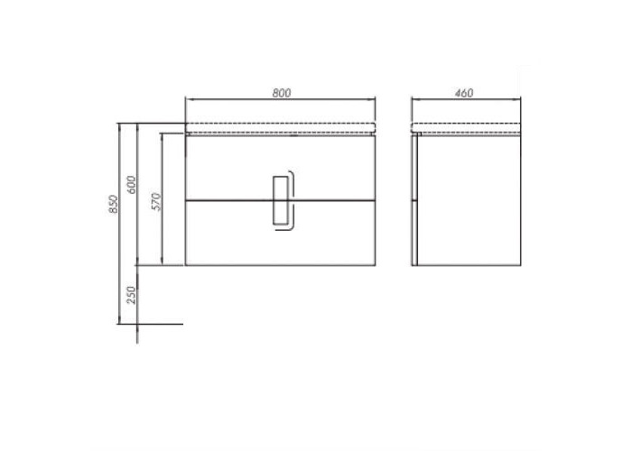 Шкафчик под умывальник подвесной, с двумя выдвижными ящиками soft-close, 800 x 570 x 460 мм.