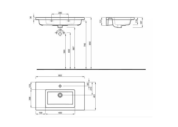 TWINS умывальник 80*46 см, мебельный, с тонким бортом, с переливом и отверстием под смеситель