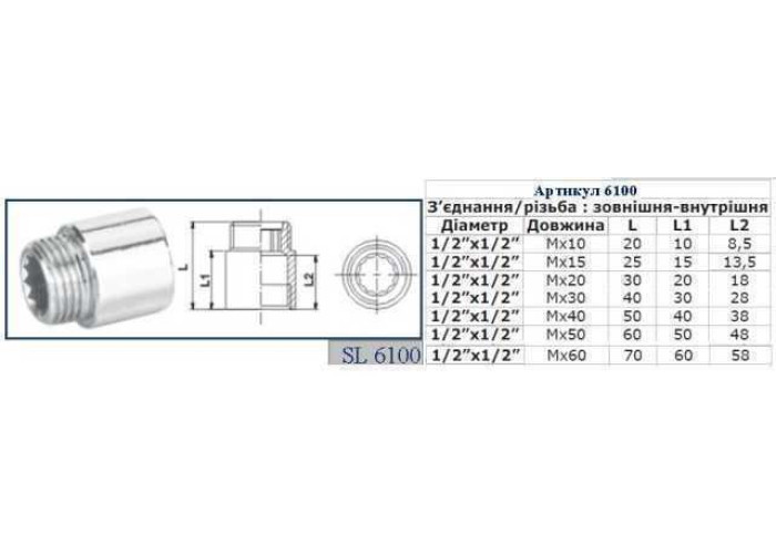 Удлинитель 1/2", 40мм, ХРОМ SL6100 SELBA Germany