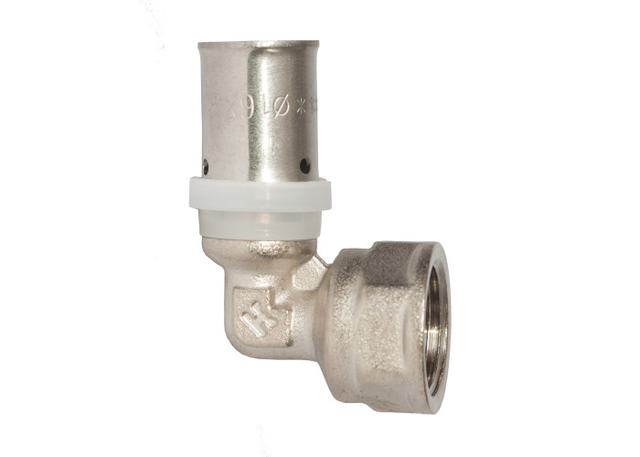 Уголок под опрессовку 16 х 1/2 ". Сделано в Италии, вид фитинга - резьбовой, изготовлены из латуни, покрытие - никель. Пресс-фитинги RSk предназначены для создания неразъемных соединений трубопроводов из металлополимерных труб (PEX-AL, PE-AL, PERT-AL). Для их производства используется высококачественная латунь CW617N. Готовая продукция имеет никелированное покрытие. Фитинги под пресс используются для создания систем водопроводов и отопления. Ассортимент бренда RSk состоит из муфт, тройников и угольников, в том числе и настенных сантехнических уголков. Представлены модели как соединительного типа, так и с переходом на наружную либо внутреннюю резьбу. Имеются как равнопроходные, так и редукционные (переходные) опрессовочные фитинги разных размеров (16-32). Данные фитинги соответствуют всем европейским нормам и стандартам качества, имеют подтверждающие документы и за надежность, качество и долговечность пользуются большой популярностью у клиентов.