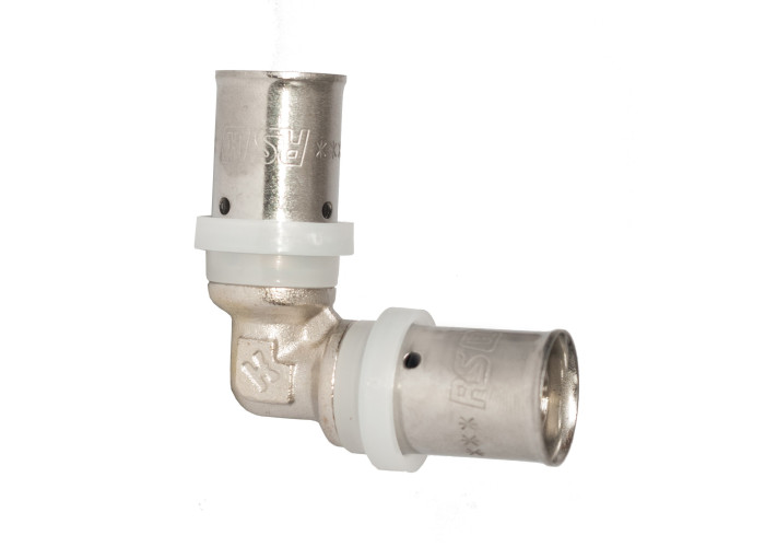Уголок под опрессовку 32 х 32. Сделано в Италии, вид фитинга - резьбовой, изготовлены из латуни, покрытие - никель. Пресс-фитинги RSk предназначены для создания неразъемных соединений трубопроводов из металлополимерных труб (PEX-AL, PE-AL, PERT-AL). Для их производства используется высококачественная латунь CW617N. Готовая продукция имеет никелированное покрытие. Фитинги под пресс используются для создания систем водопроводов и отопления. Ассортимент бренда RSk состоит из муфт, тройников и угольников, в том числе и настенных сантехнических уголков. Представлены модели как соединительного типа, так и с переходом на наружную либо внутреннюю резьбу. Имеются как равнопроходные, так и редукционные (переходные) опрессовочные фитинги разных размеров (16-32). Данные фитинги соответствуют всем европейским нормам и стандартам качества, имеют подтверждающие документы и за надежность, качество и долговечность пользуются большой популярностью у клиентов.