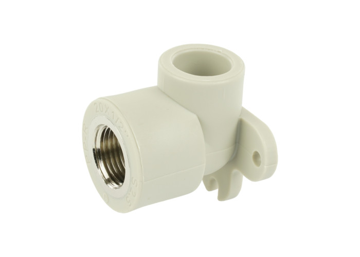 Уголок PPR Thermo Alliance настенный 20х1/2" ВР помогает выполнить в системах из полипропилена переход на резьбовое соединение, необходимое для подключения различных сантехнических и теплотехнических устройств. Фитинг снабжен планкой с отверстиями для крепления к стене. Резьба внутренняя, 1/2 дюйма. К полипропиленовому отрезку трубопровода Г-образный фитинг приваривают полифузной пайкой. Применение такого фасонного изделия позволяет выполнить монтаж быстро, качественно и надежно.