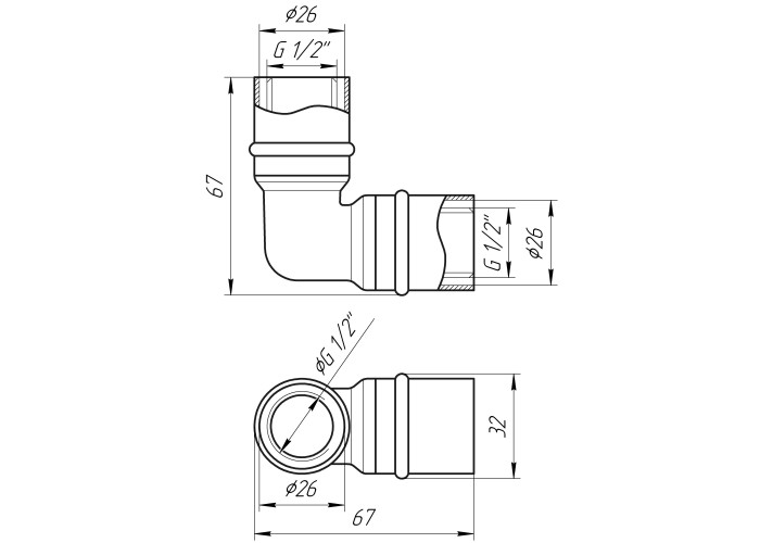 Габариты : 26*26 на 26 металлопластиковую трубу