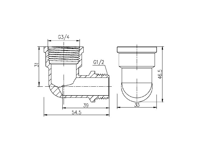 Уголок редукционный SD Forte 3/4"х1/2" ВН выполнен из никелированной латуни.